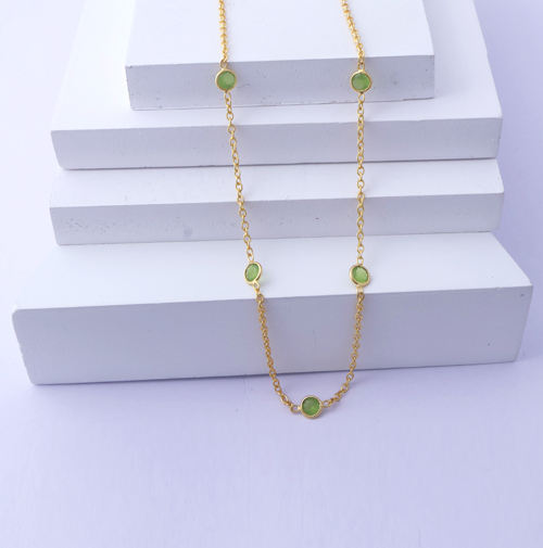 La conception la plus populaire 4 mm prehnite forme ronde pierre double couche station bijoux 18k plaqué or lunette ensemble câble chaîne collier