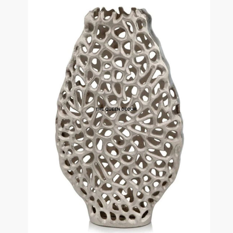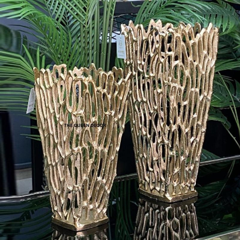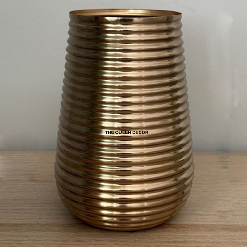 Vase décoratif rond en métal, finition poudre blanche et plaqué or, design très populaire, unique et personnalisable