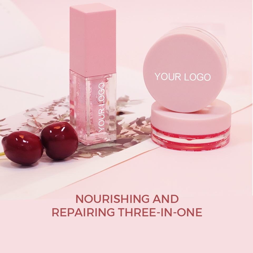 Ensemble de 3 pièces de baume et gommage pour les lèvres le plus populaire Ensemble de soins de la peau avec marque privée Baume pour les lèvres sèches et gercées