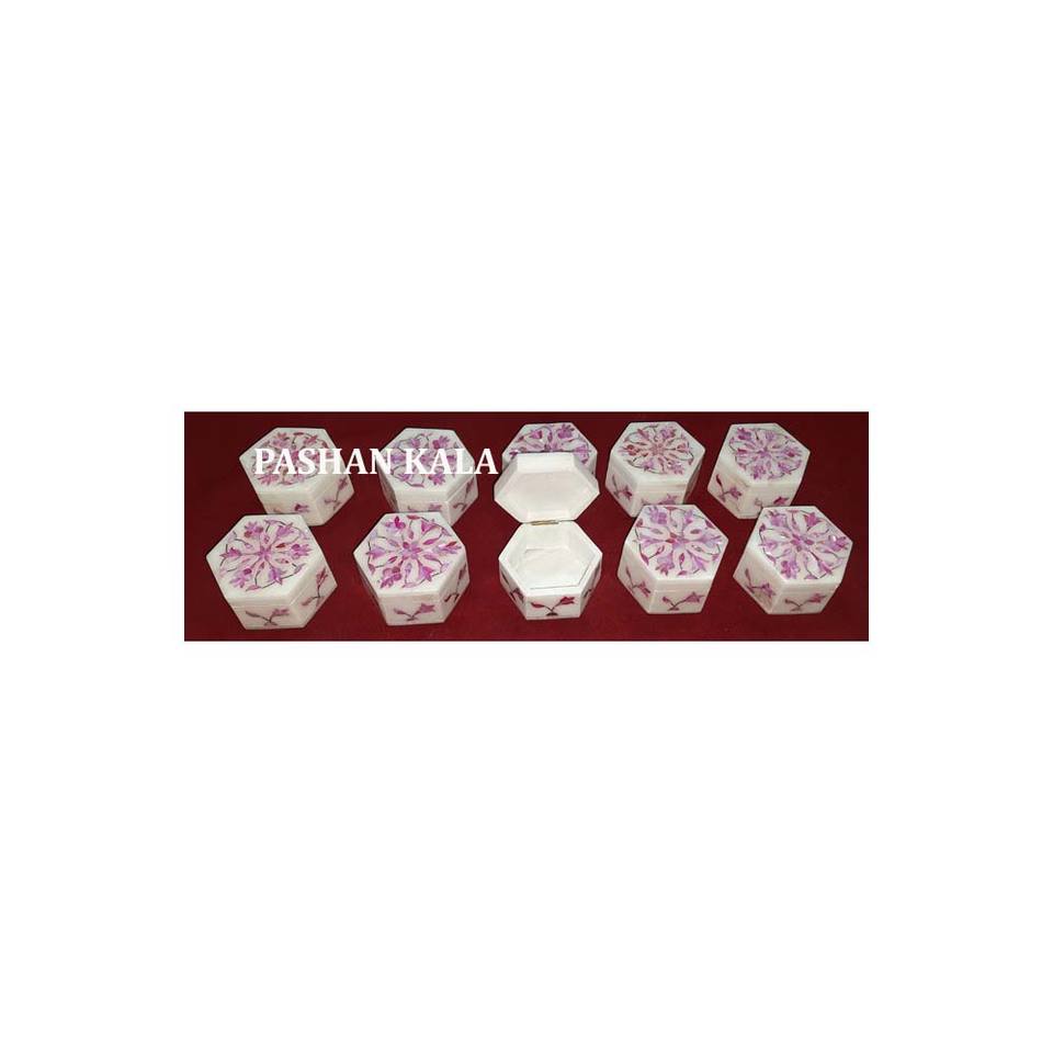 Boîte à bijoux la plus populaire, nouvelle, faite à la main, en nacre rose, avec un design hexagonal incrusté, pour les acheteurs au prix d'usine