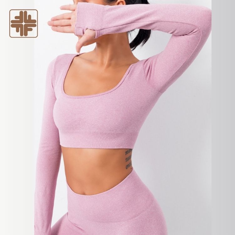 most popular new yoga sets rib Long Sleeve Crop Top with thumbholes