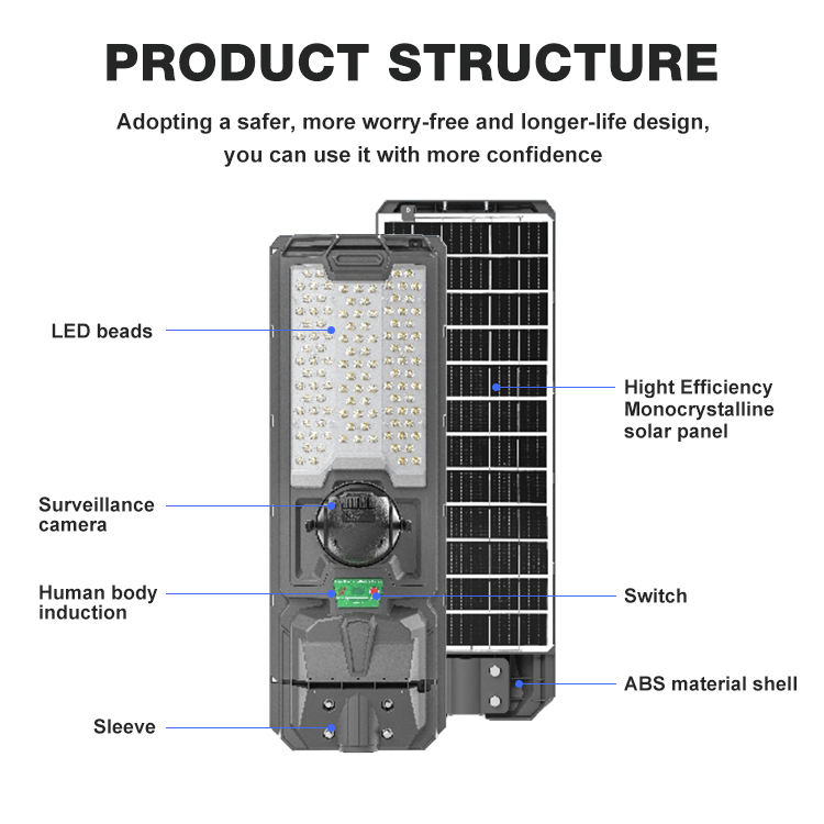Le plus populaire éclairage extérieur de jardin de route étanche IP65 800w 1200w intégré tout en un CCTV a mené le réverbère solaire