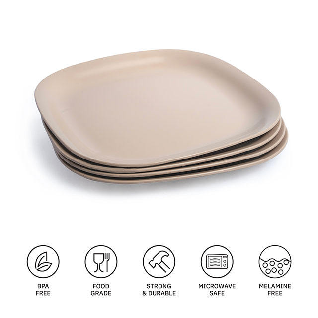 Eco-Friendly Elegant Beige 9-inch Medium Square Melamine Dinner Plate Unbreakable Microwave Safe Most Popular BPA-Free Plastic
