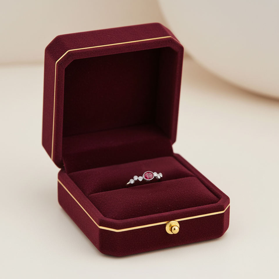 Bague en or massif 18 carats avec rubis naturel et diamants véritables, design minimaliste tendance, la plus populaire, faite à la main