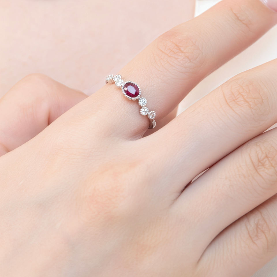 Pierre précieuse:1 rubis en total fait environ 0,35 ct.