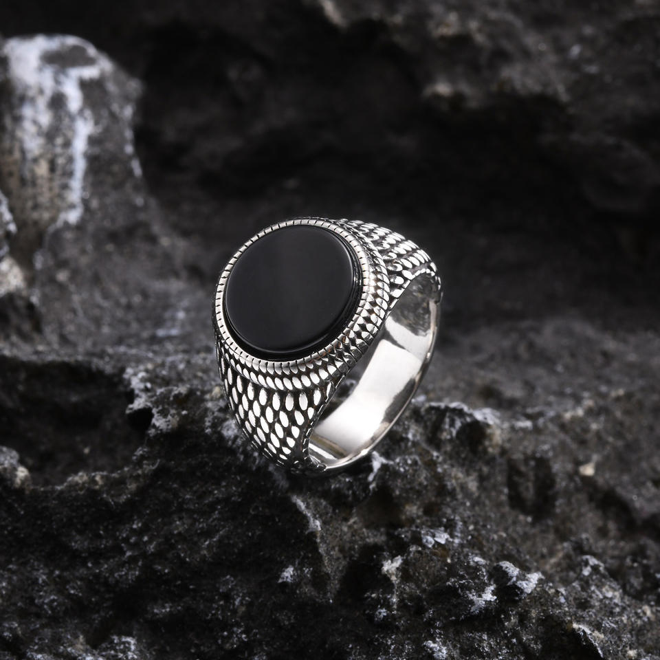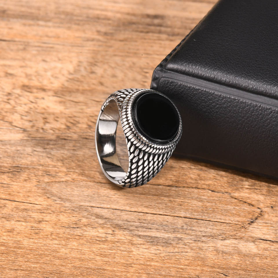 Bagues Chevalière Vintage Bijoux Cool Punk Acier Inoxydable Agate Noire Turquoise Bagues de Mariage pour Hommes Cadeau Dainty
