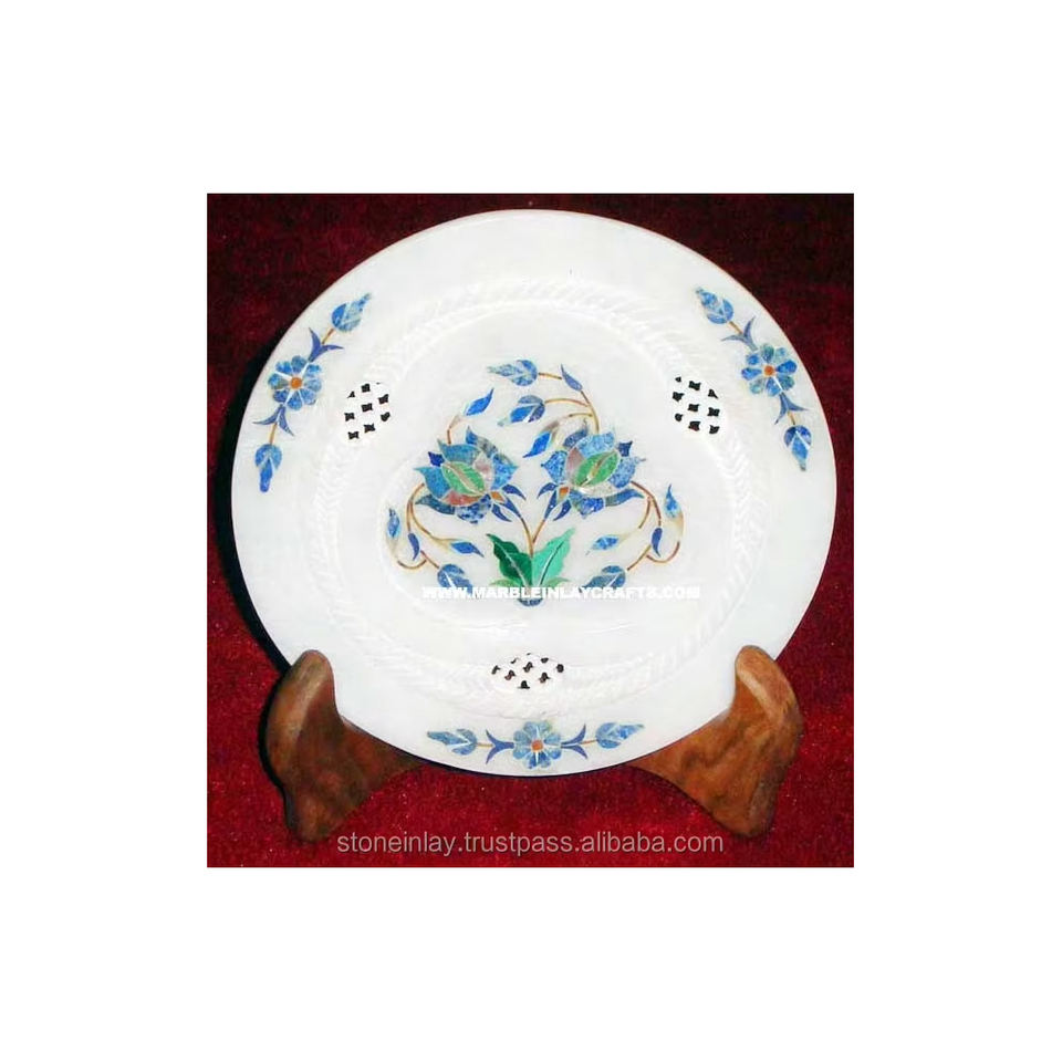 Plaque de sculpture d'incrustation de marbre blanc la plus populaire avec le meilleur design floral en forme arrondie pour la décoration de la maison et de l'hôtel