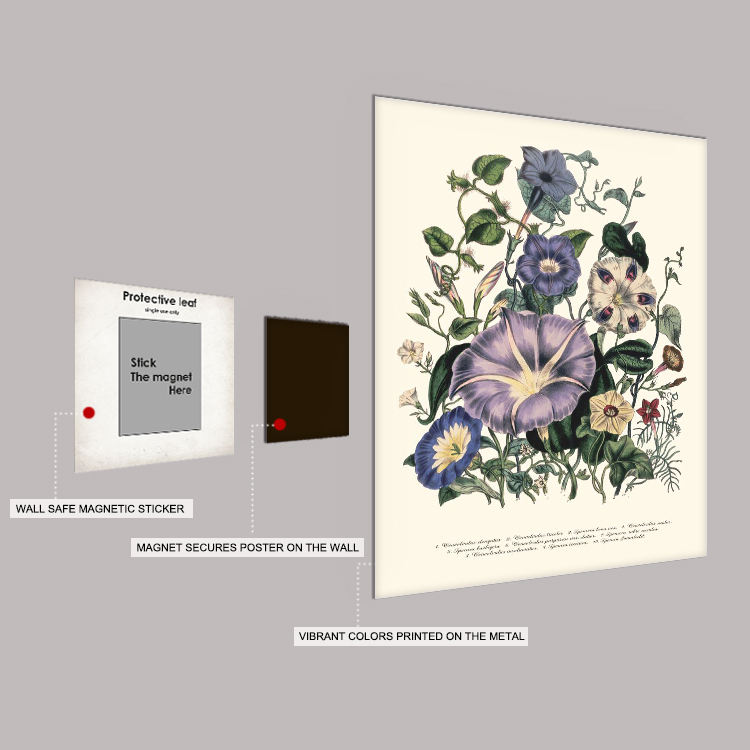 Le plus populaire Vente en gros Botanique Tin Print Magnet Mounted Metal Poster Garden Style Flower Market Wall Decor Plaque