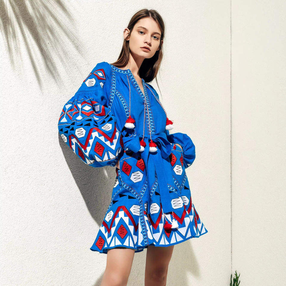 Most Popular Women's Bohemian Design Long Dress Designer Vyshyvanka Ukrainian Short Dress Hand Embroidered Washable Hot Sale
