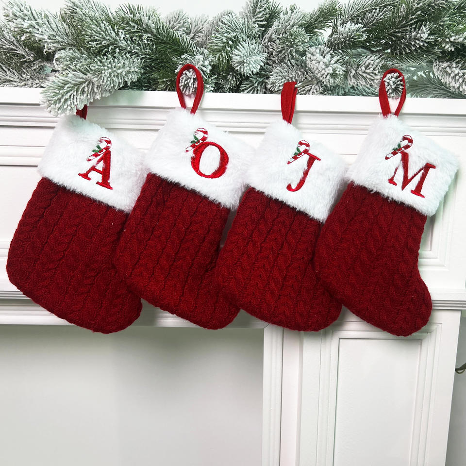 Sac cadeau pendentif de Noël le plus populaire A-Z le nom de famille initiale brodée tricot vert bas de Noël