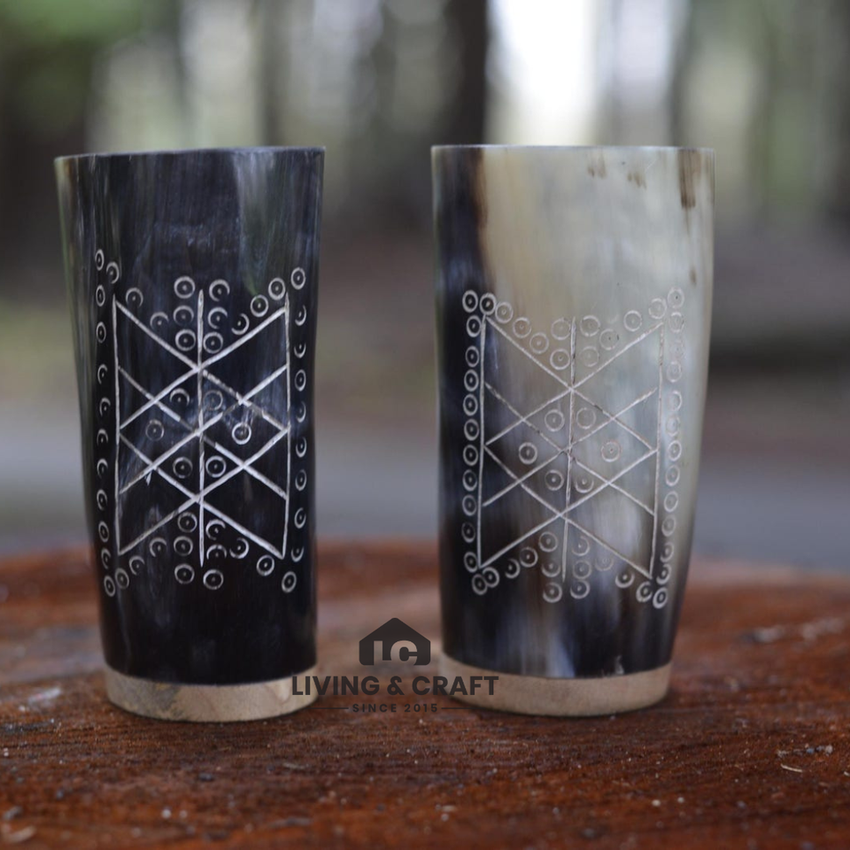 production:Engraved drinking horn glass