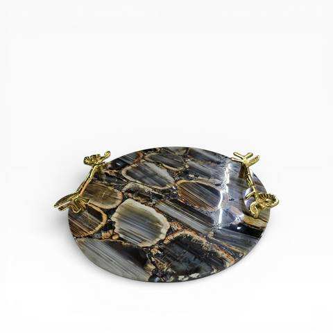 Plateau de service classique de luxe en bois tendance pour la maison, les mariages, Diwali, avec poignée dorée, idéal pour les fruits et les aliments