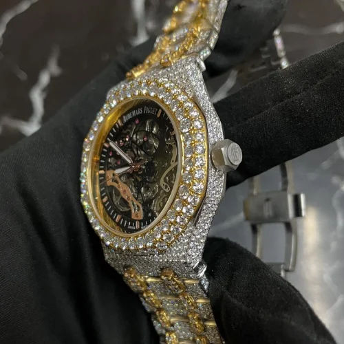 Montre squelette automatique de luxe pour homme la plus vendue, entièrement sertie de diamants en moissanite VVS1, en acier inoxydable, en gros