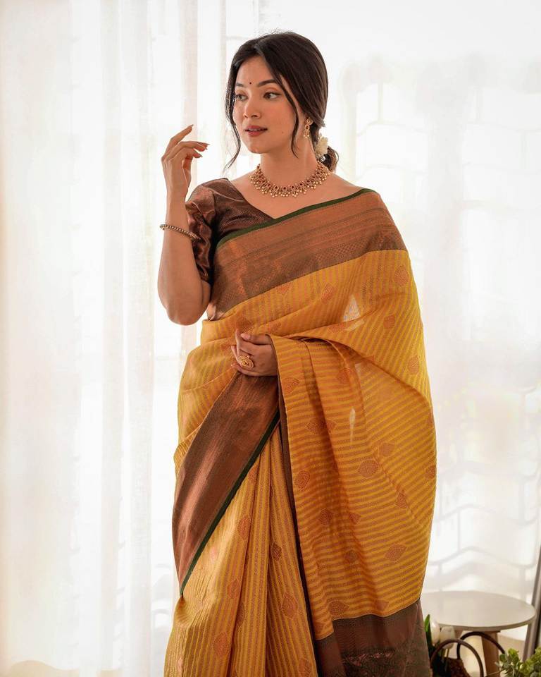 Saree en soie pattu le plus vendu avec un contraste riche tissage Saree en soie sari plissé prêt à porter