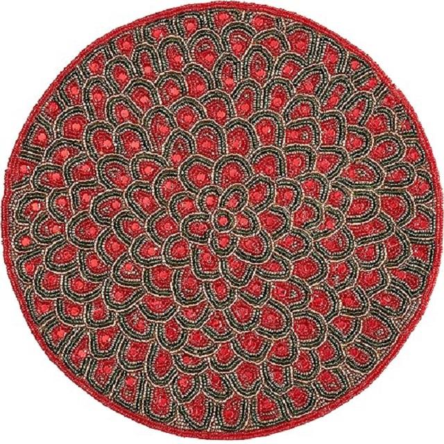 Produit le plus vendu napperon rouge rond blanc à perles florales maison essentiel Table à manger tapis décoratif ustensiles de cuisine tapis de produit