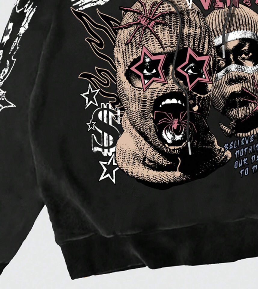 Sweat à capuche réversible en polyester/coton avec strass DTF, design tendance pour l'hiver, nouveau style pour hommes