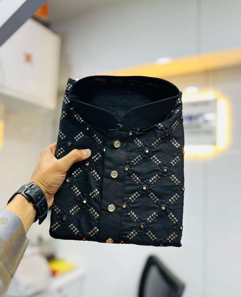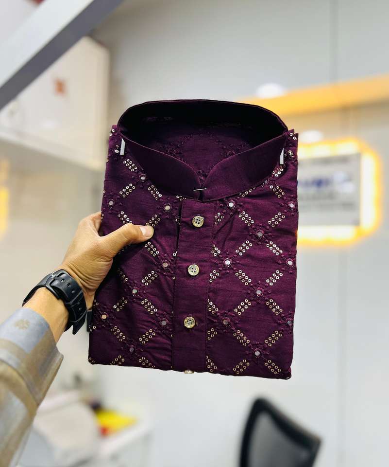 Product Name:Attractive Heavy Soft Silk With Embroidery Men Kurta