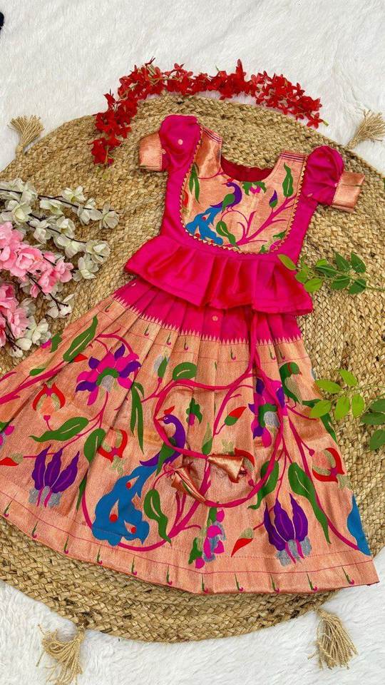 Soie Lichi à la mode avec tissage Zari pour enfants Lehenga Choli