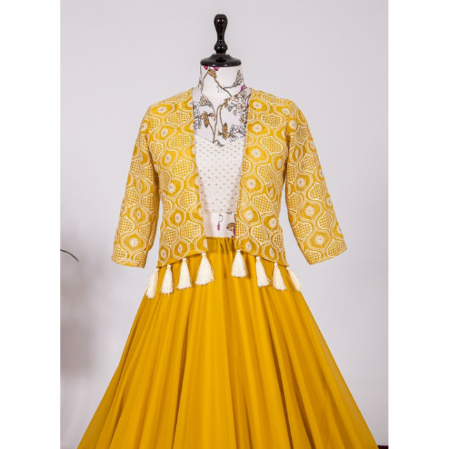 Nom du produit:Tendance Élégant Georgette Broderie Travail Lehenga Choli Avec Koti