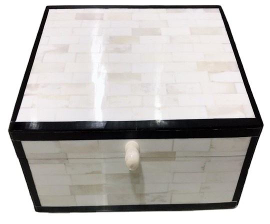 Bouton blanc le plus tendance Boîte à os Art indien Décoration intérieure Poterie Bijoux Rectangle Spécial Conçu Bords noirs pour un usage domestique