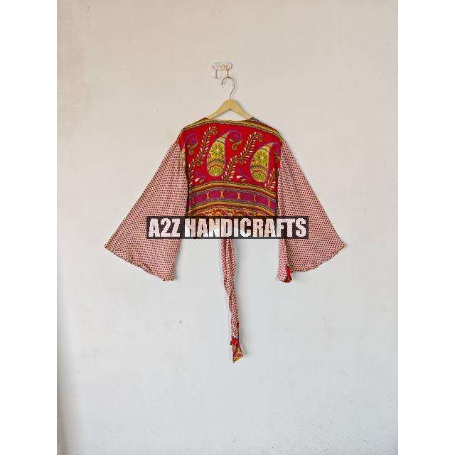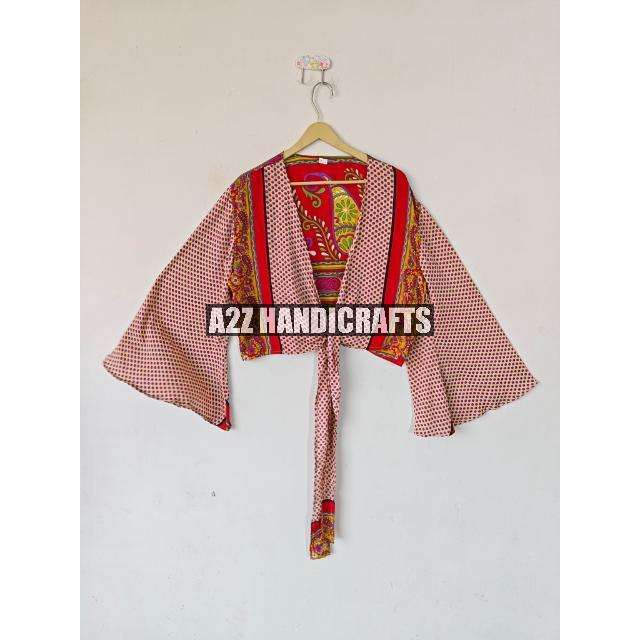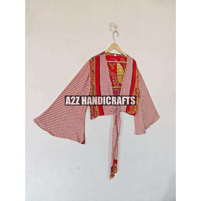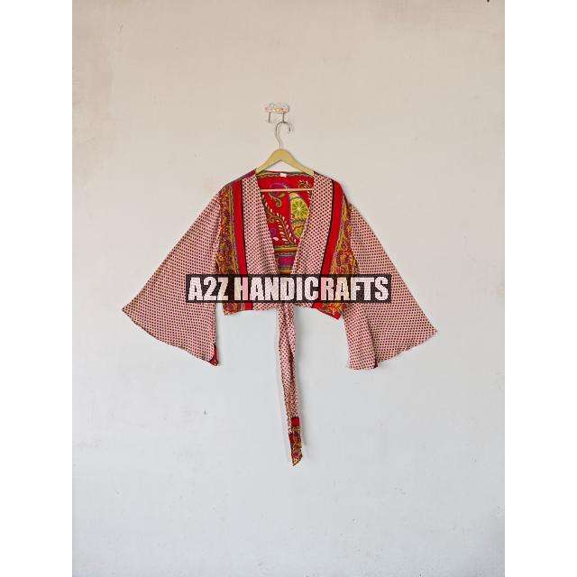 Most Trending Women's Summer Casual Silk Wrap Tie Top Blouse Floral Crop Top Bell Sleeve Deep V Tie Recycled for Party Wear