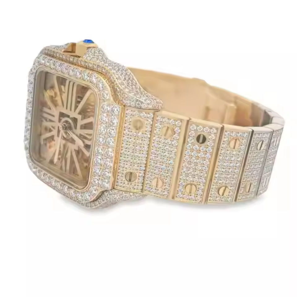 Montre Moissanite la plus unique pour hommes avec acier inoxydable et diamants ronds taille brillant Vvs clarté
