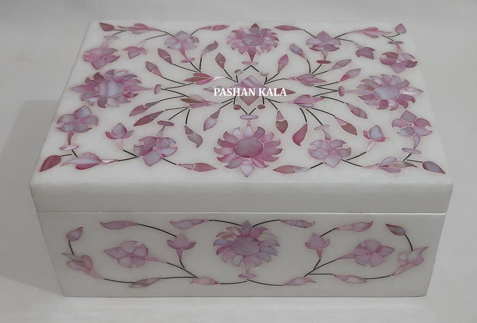 Most Very Beautiful Natural Sea Shell Pink Mother Of Pearl White Marble Gift Boxes With Customize Size And Gorgeous Inlay Box