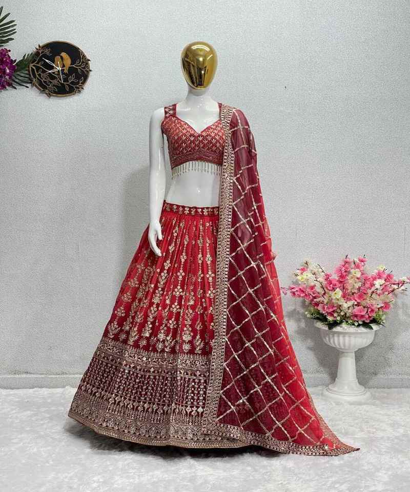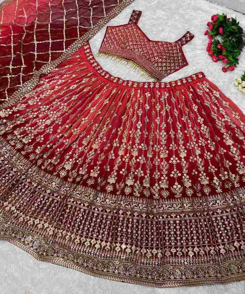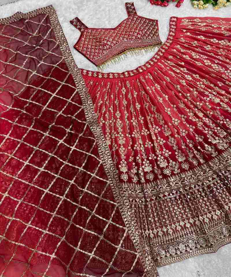 Travail de broderie le plus attrayant georgette tissu lehenga choli avec dupatta vêtements de mariage pour les femmes le plus bas prix vêtements ethniques