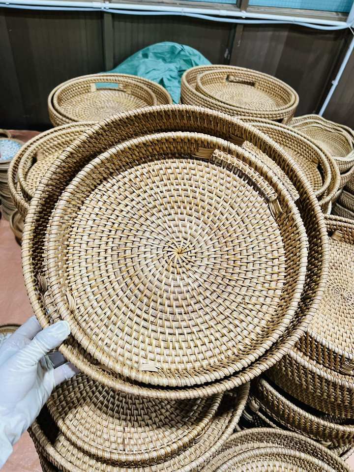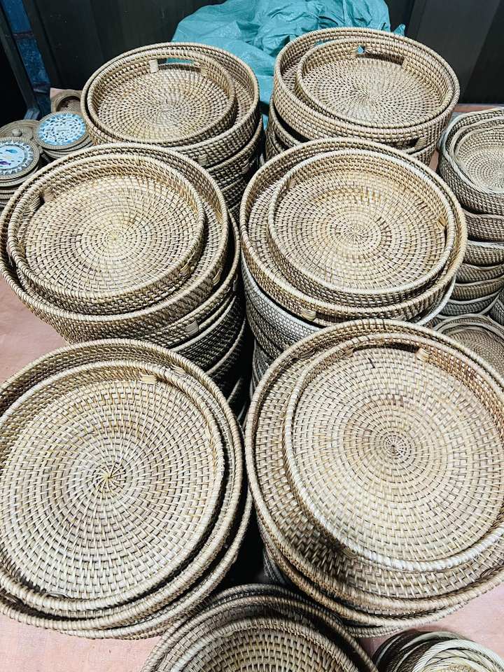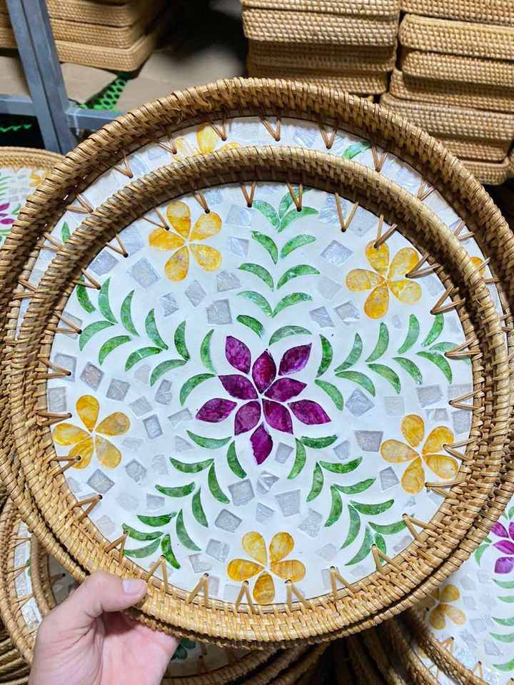 Plateau en rotin incrusté de nacre, combinaison coquille de rotin pour service de restaurant, Vietnam par 99 Gold Data - Mme Violet