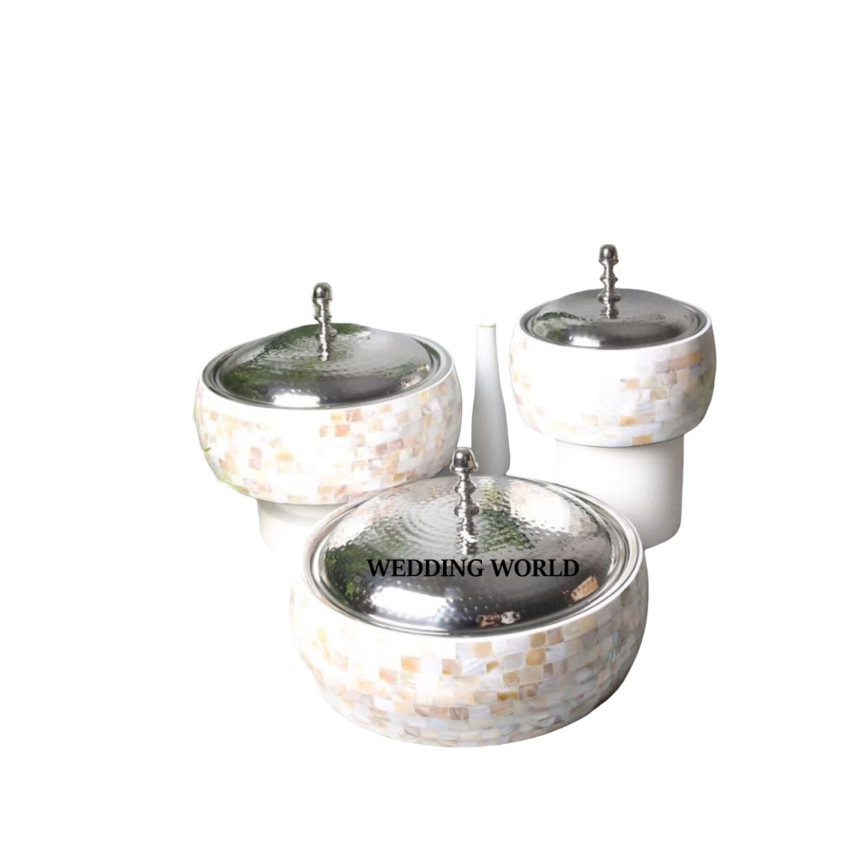 Ensemble de trois plats chauds en nacre, de haute qualité, faits à la main, design de luxe, nouveau, élégant, chauffe-plats en métal