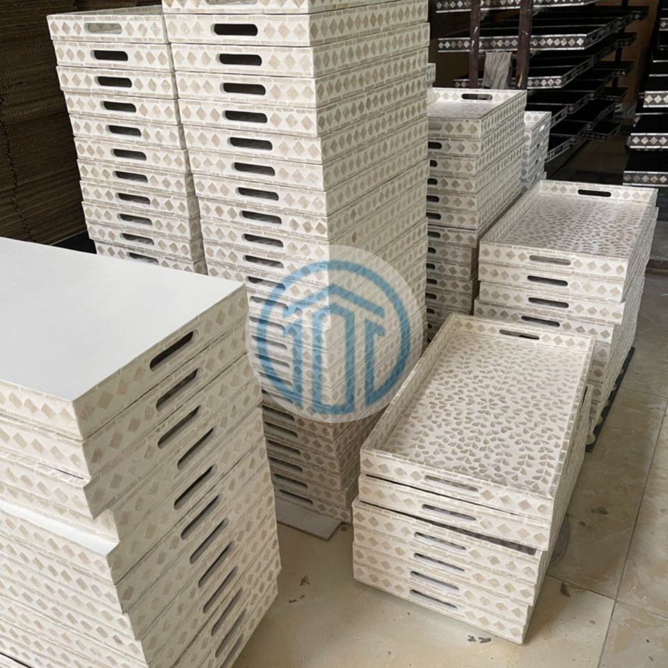 Plateau en nacre rectangulaire, tons pastel, incrusté à la main, plateaux de service décoratifs pour la décoration moderne de la maison, décoration de salon