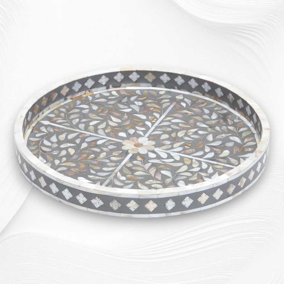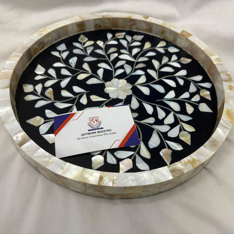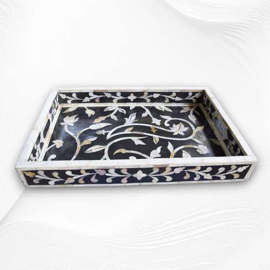 Plateau de service rectangulaire en bois avec incrustation de nacre, design classique, finition polie, vaisselle durable, multifonctionnel pour les aliments et les boissons