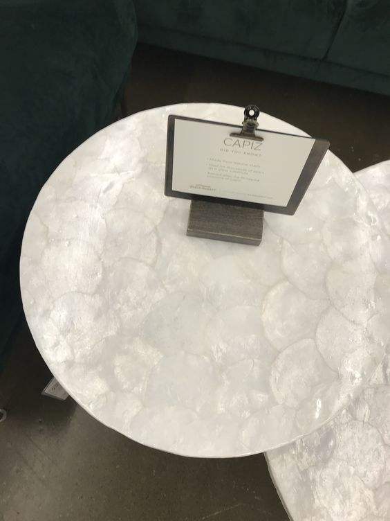 Plateau de table basse en nacre inspiré des coquillages avec des couleurs naturelles de quartz, de granit et de marbre pour le salon