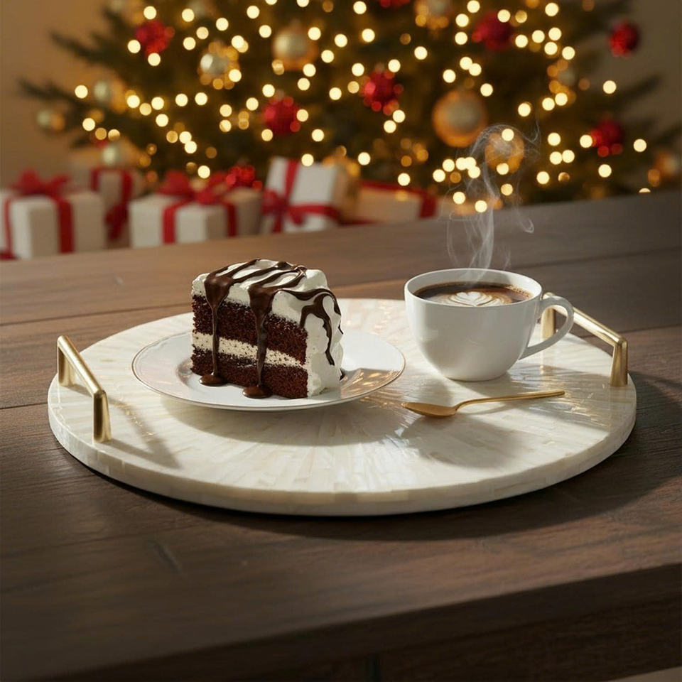 Product name:13" Round Display & Serving Tray with Gold Handles