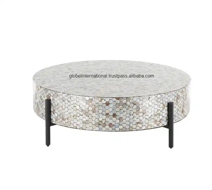 Table basse en incrustation de nacre pièce maîtresse de maison exquise faite par vadrouille et Table basse en bois utilisation de décor de salon