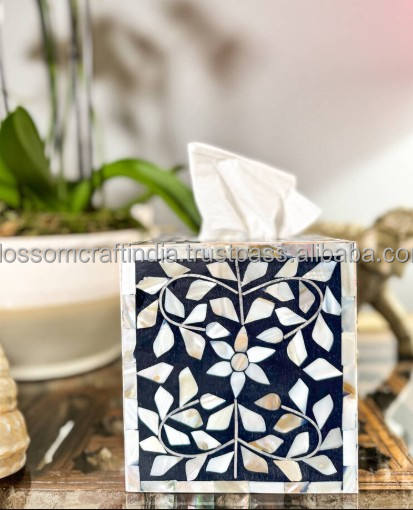 Boîte à mouchoirs en nacre incrustée, faite à la main, mosaïque de coquillages décorative, couvercle rectangulaire, luxe pour la maison, la chambre, la salle de bain, le bureau