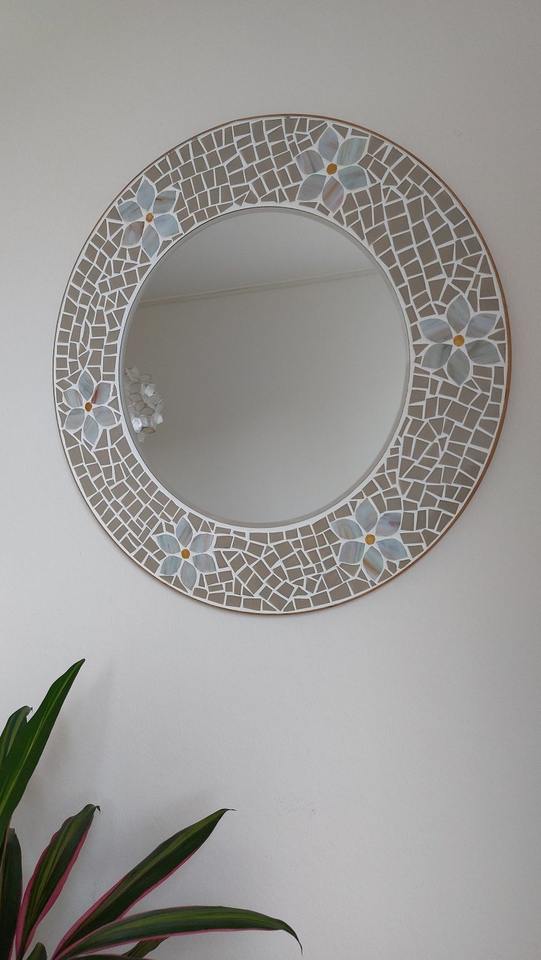 Mother of Pearl Mosaic Inlay Mirror Handmade Eco-Friendly Round Wall Decor Modern Industrial Design Available All Sizes Styles