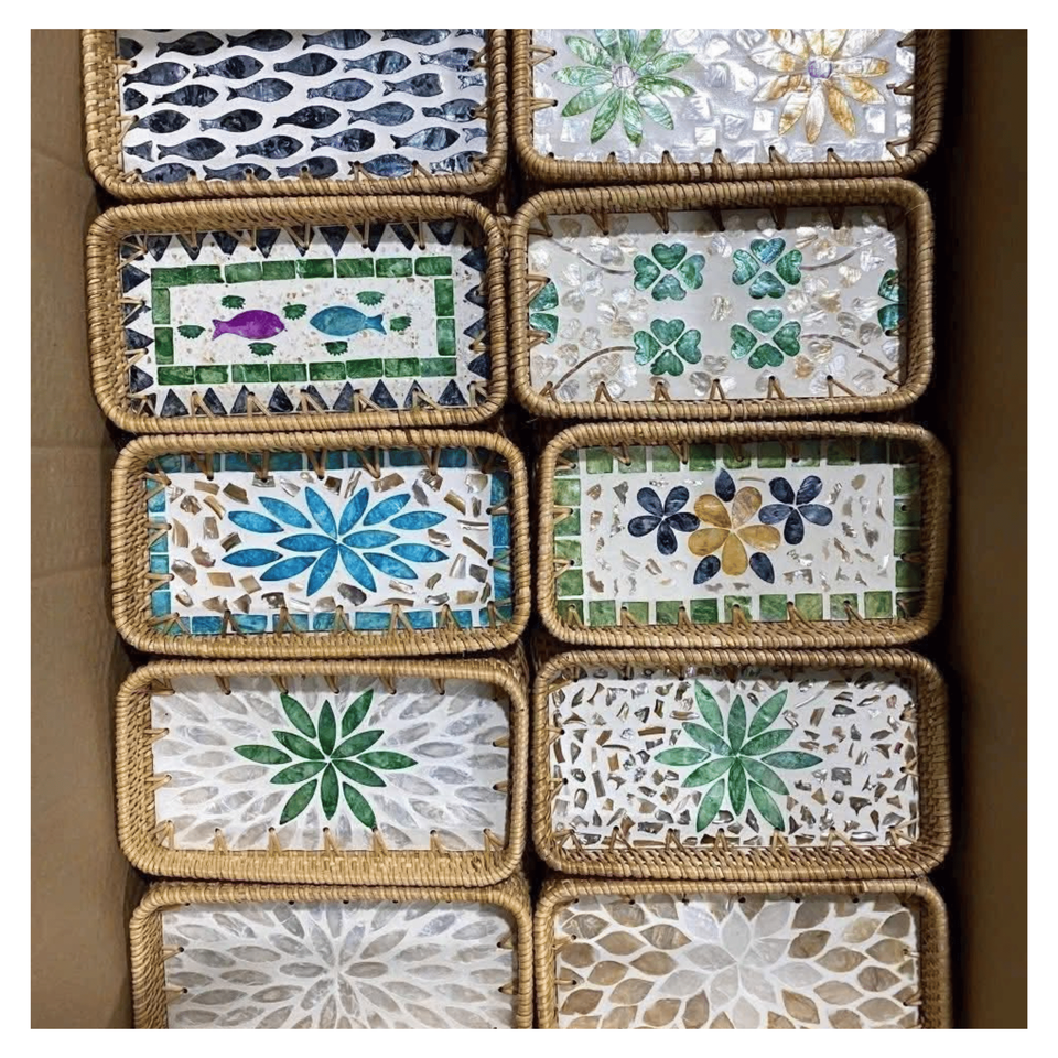 Plateau en rotin nacre avec incrustation de perles pour service de minibar, cadeau du Vietnam