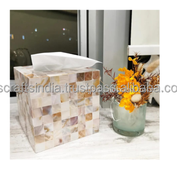 Boîte à mouchoirs décorative moderne de luxe en nacre de coquillage écologique faite à la main pour la salle de bain, la maison, le dessus de table