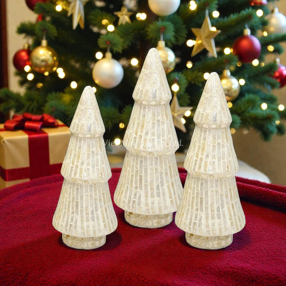 Mother of Pearl and Bamboo Core Christmas Tree Handmade Ornament for Holiday Table Display Home Decoration and Gift From Vietnam