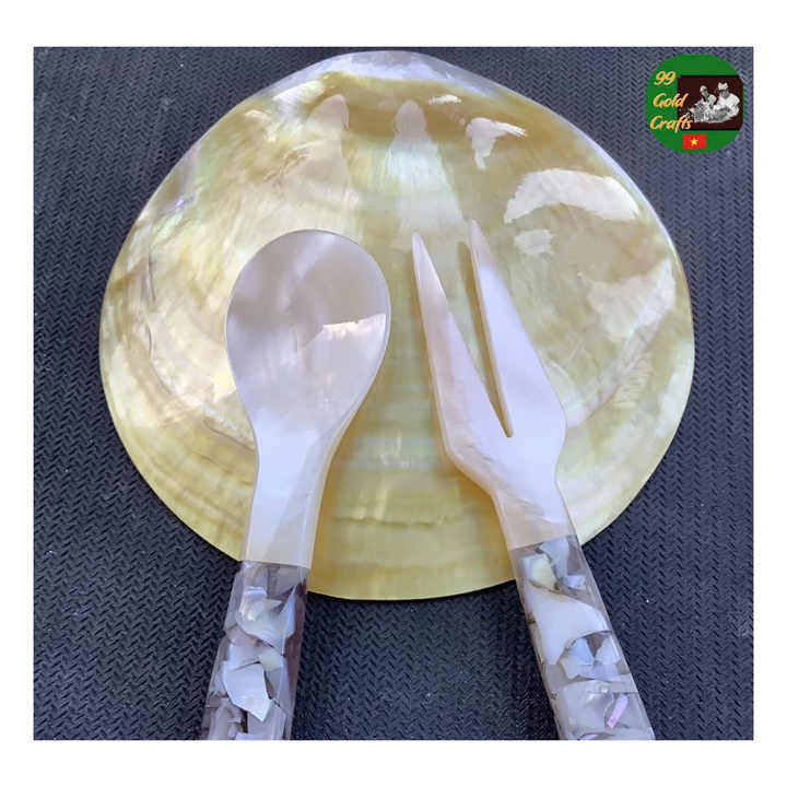Mother of pearl handmade spoon and plate, round dish for luxury home decor Handcrafted Mother Of Pearl Spoon For Gourmet Use