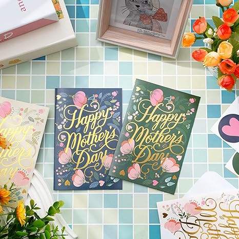 Carte de la fête des mères avec autocollants et enveloppes, assortiment de cartes vierges florales pour célébration d'anniversaire