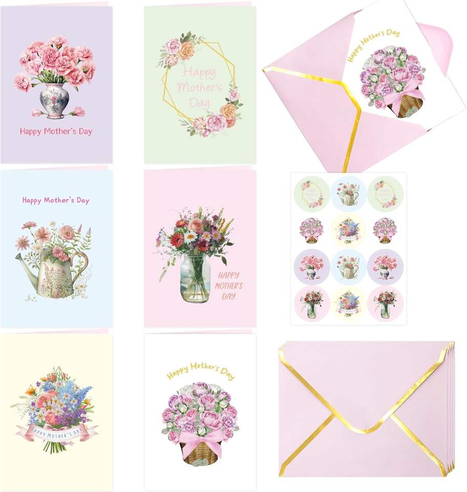 Ensemble de cartes de voeux pour la fête des mères avec enveloppes autocollants Invitations florales roses pour la fête des