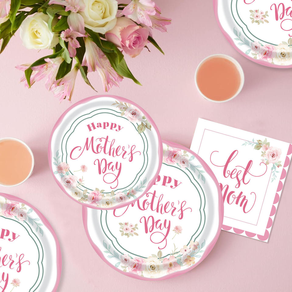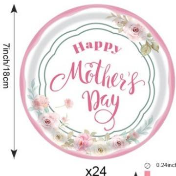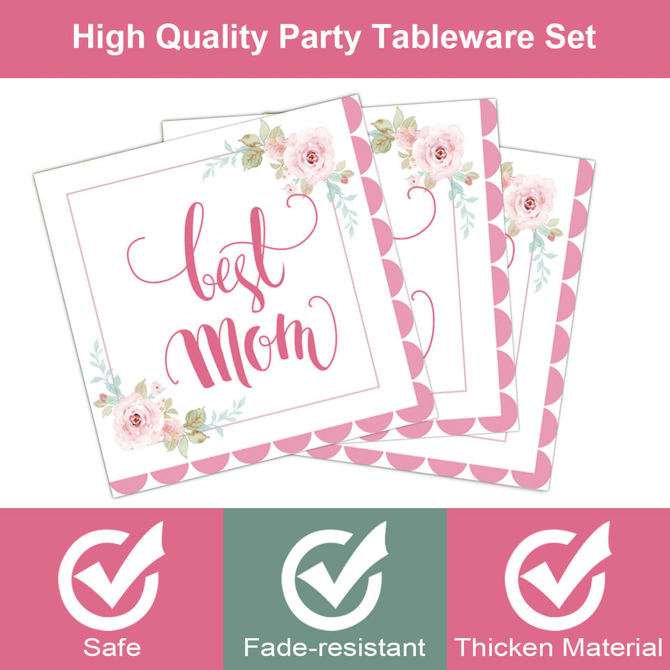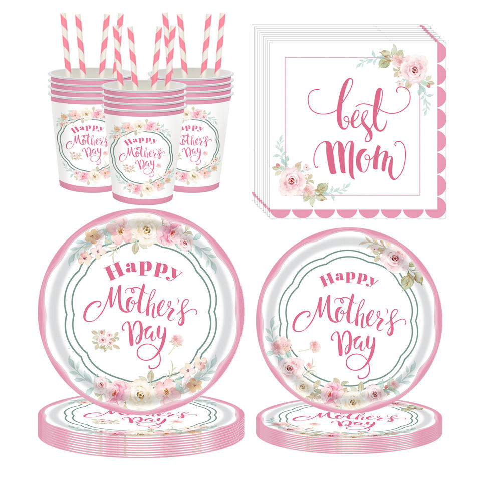 Ensemble de fête à thème pour la fête des mères 24 assiettes en papier jetables pour invités Essuie-tout Fourchette Décorations de fête Ensemble de vaisselle
