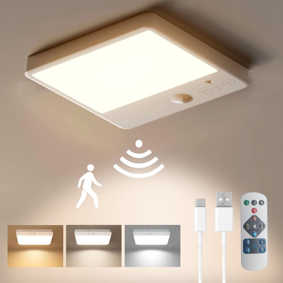 Motion Sensing Closet Light Wireless Ceiling Light with Remote Control for Bathroom Staircase Corridor Storage Room