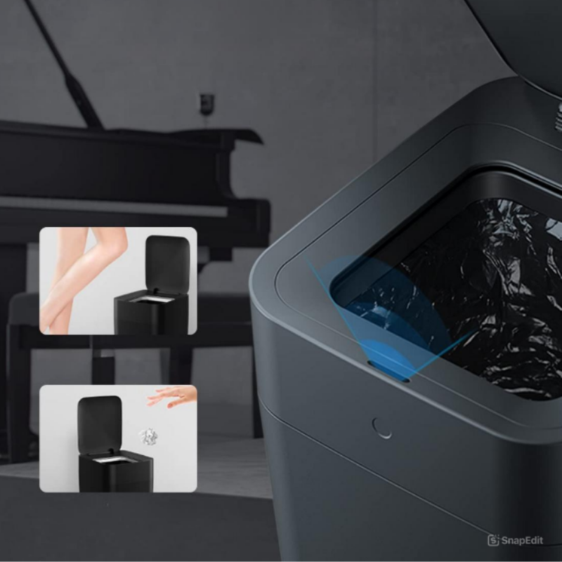 Poubelle à détecteur de mouvement, 18 gallons (68L) Poubelle automatique de cuisine avec couvercle à ouverture continue, fermeture douce, acier inoxydable, noir