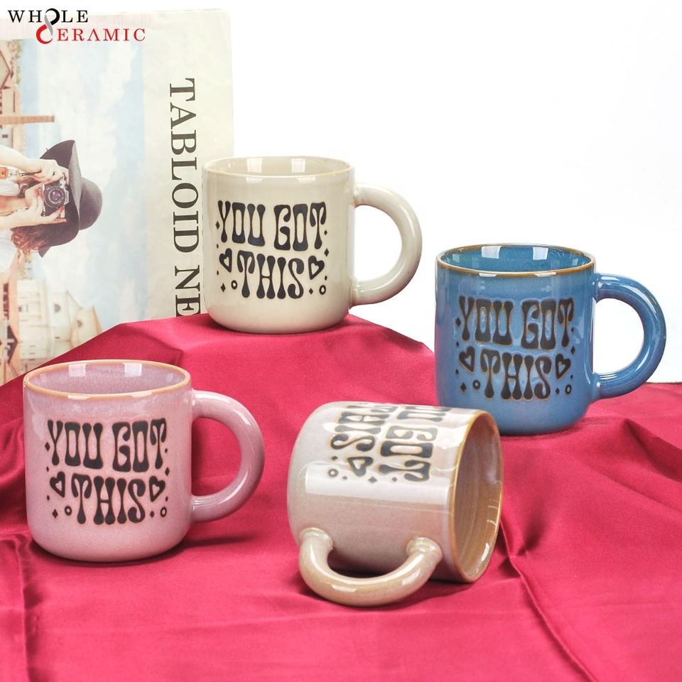Mug à café en céramique motivant « You Got This » – 12 oz, design rétro feuille de fougère, céramique à glaçure réactive (options multicolores)