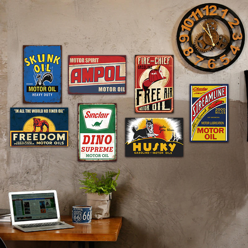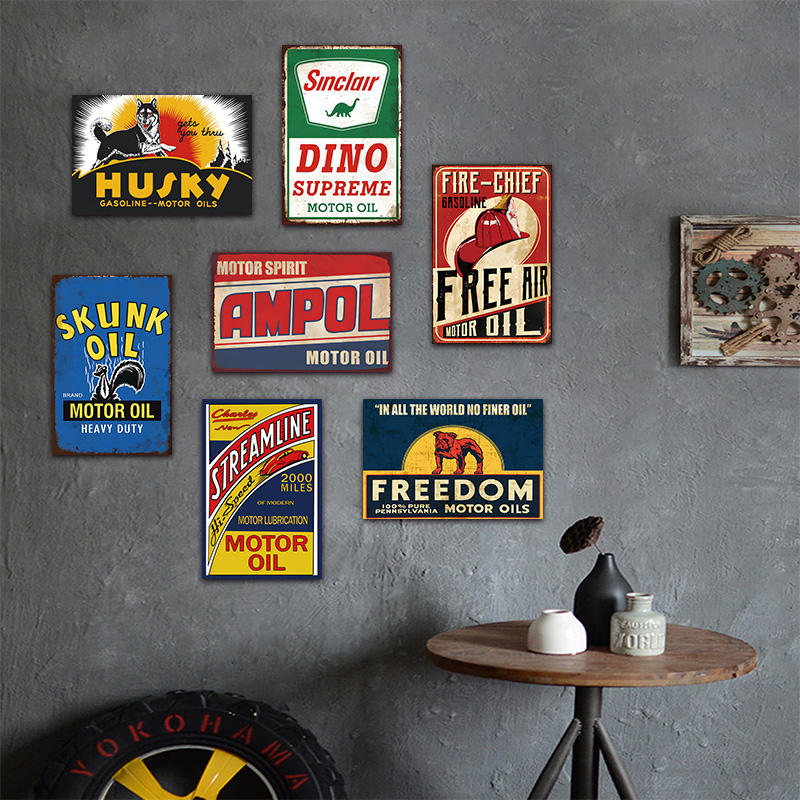 Panneau métallique rétro en étain, thème Huile Moteur Essence, Freedom Ampol Husky, pour décoration murale de garage, de garage masculin et de atelier automobile