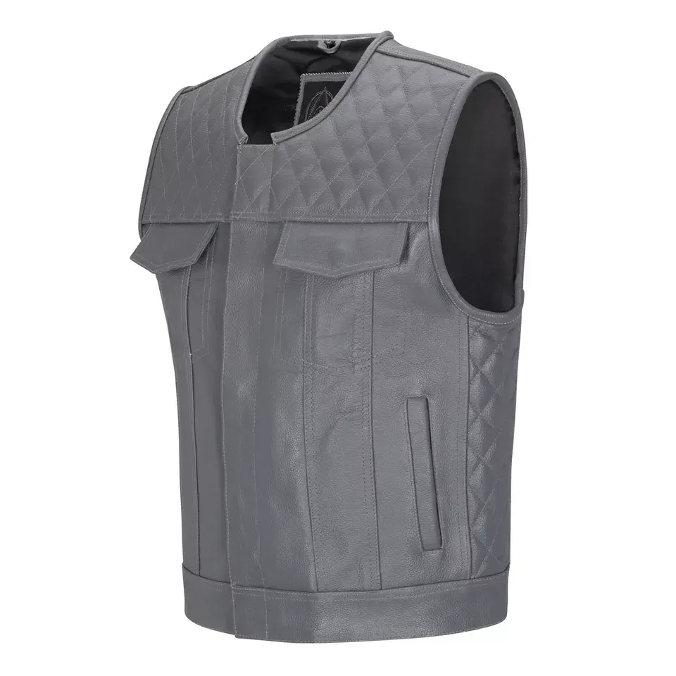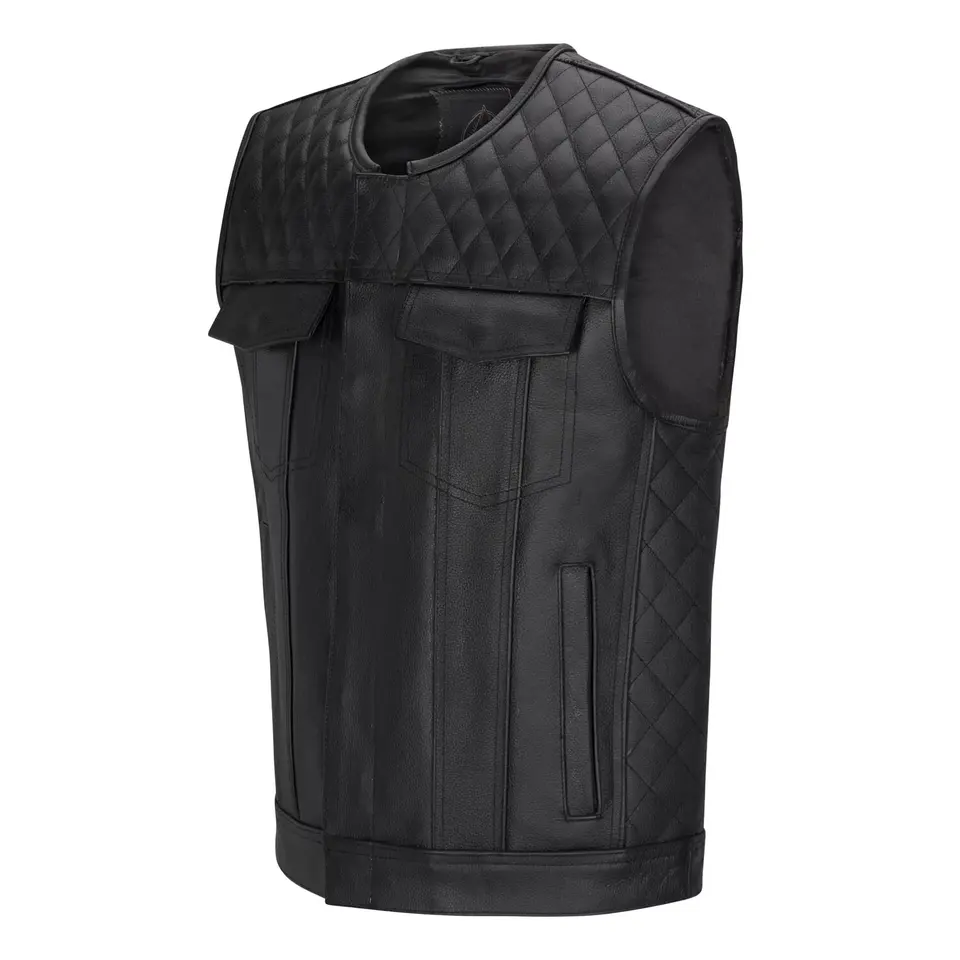 Motorbike Vest Diamond Stitch Leather Sleeveless Motorcycle Biker Vest for Tall Rider in High Quality