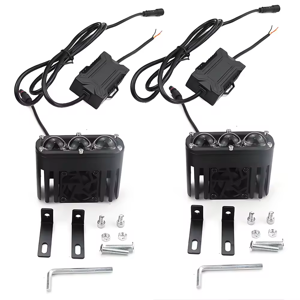 Phare auxiliaire avant de moto à 2 lentilles LED, étanche IP67, 50W 5000LM, double couleur jaune/blanc, faisceau haut/bas avec ventilateur